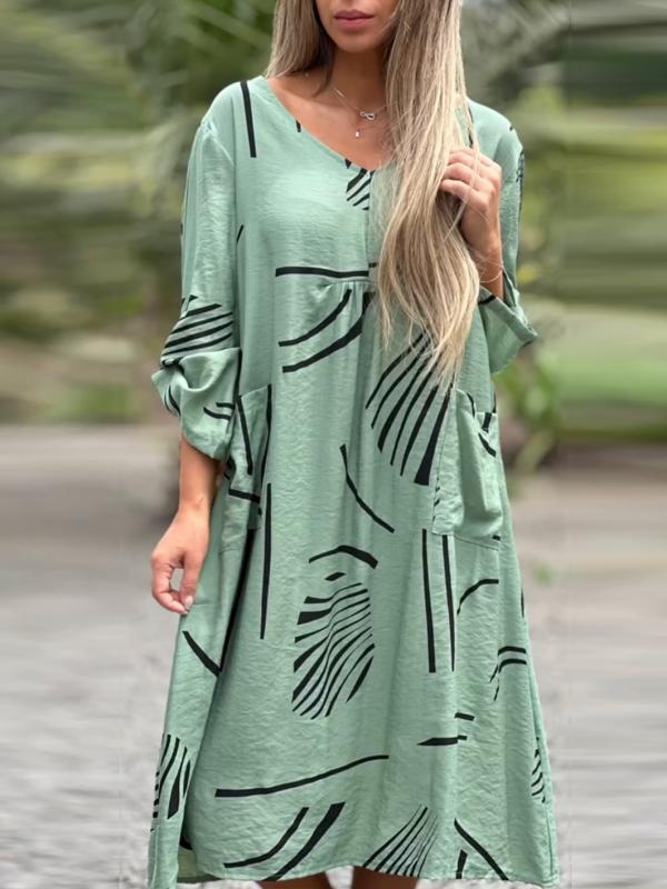 🌸 Rochie imprimată cu mânecă șapte sferturi și gât rotund